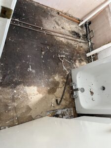An existing customer of ours owned this rented property. Their plumber had advised resealing the bath but they asked us to take a second look. Upon inspection we found corroded pipes and severely water damaged flooring in need of urgent attention.