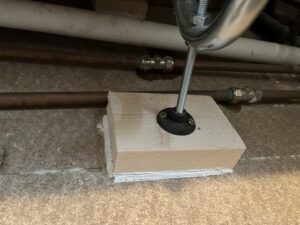 We removed the existing bathroom suite and floor. Re laid a moisture resistant floor with chocks for the bath feet to help spread the load.